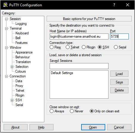 ssh -p 5739 login@custromer-name.smarthost.eu