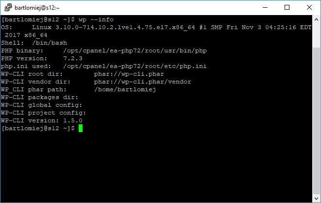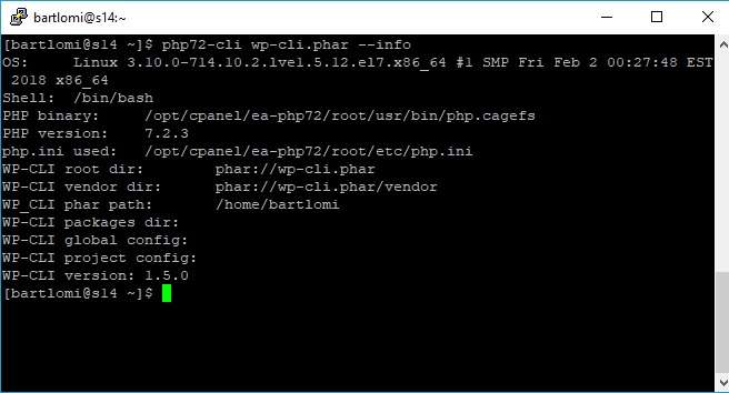 alias wp=’/opt/cpanel/ea-php72/root/usr/bin/php /home/loginklienta/wp-cli.phar’
