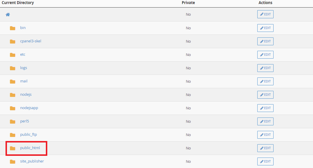 Then, by clicking on the folder icons, we go to the WordPress or Joomla directory