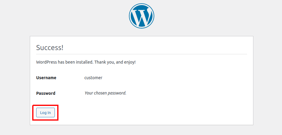 We will be transferred to the WordPress user login screen (if we want to later enter the login screen, enter the address of our website in the browser and add "/wp-login.php", such as www.customer-domain.eu/wp-login.php ).